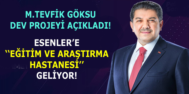 Esenler Belediye Başkanı M.Tevfik Göksu, Esenler’de yeni bir projenin müjdesini verdi. İlk etapta 400 yataklı, daha sonradan 600 yataklı Devlet Hastanesi’nin yapımına kısa süre içerinde başlayacaklarını açıkladı.