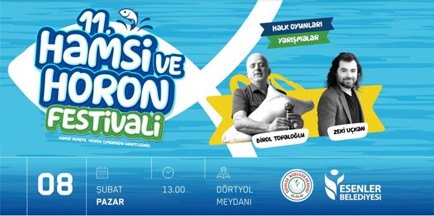 Esenler Belediyesi tarafından bu yıl 11.’si düzenlenecek olan “Hamsi ve Horon Festivali” Karadeniz coşkusunu Esenler’e taşıyacak. Vatandaşlara 5 ton hamsinin ikram edileceği festival; halk oyunları, yarışmalar, yöresel lezzetler ve konserler ile renklenecek.