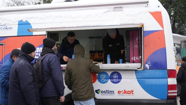 Esenler Belediyesi Halkla İlişkiler ekipleri, etkili olan kar yağışı nedeniyle ilçenin yoğun noktalarında vatandaşlara çeşitli ikramlarda bulundu. İstanbul Valiliği ile koordinasyon içinde gerçekleştirilen çalışmalar kapsamında, sabah saatlerinden itibaren işe giden, trafikte beklemek zorunda kalan ve gün içinde dışarıda bulunan vatandaşlara hizmet veren ESTİM İkram Aracı ile 5 bin kişiye ulaşıldı. Vatandaşlara sunulan sıcak ve soğuk ikramlarla kar yağışının etkili olduğu kış günlerinde günlük yaşamın temposuna destek olundu.
